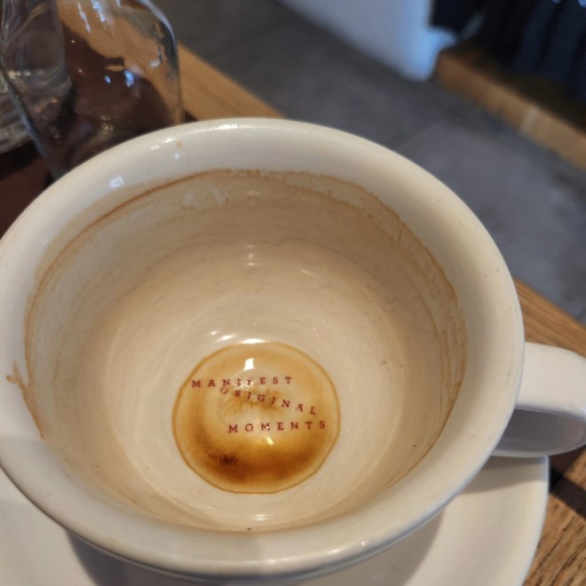 Rich and I got breakfast before the others arrived. We walked a couple blocks to this cafe called My Oh My and the menu had a tagline about magic. And they brought coffee with a little sparkling water chaser. And then when I finished my coffee there was a message imprinted in the ceramic, reminding me to manifest original moments. I immediately declared Australia a magical place.